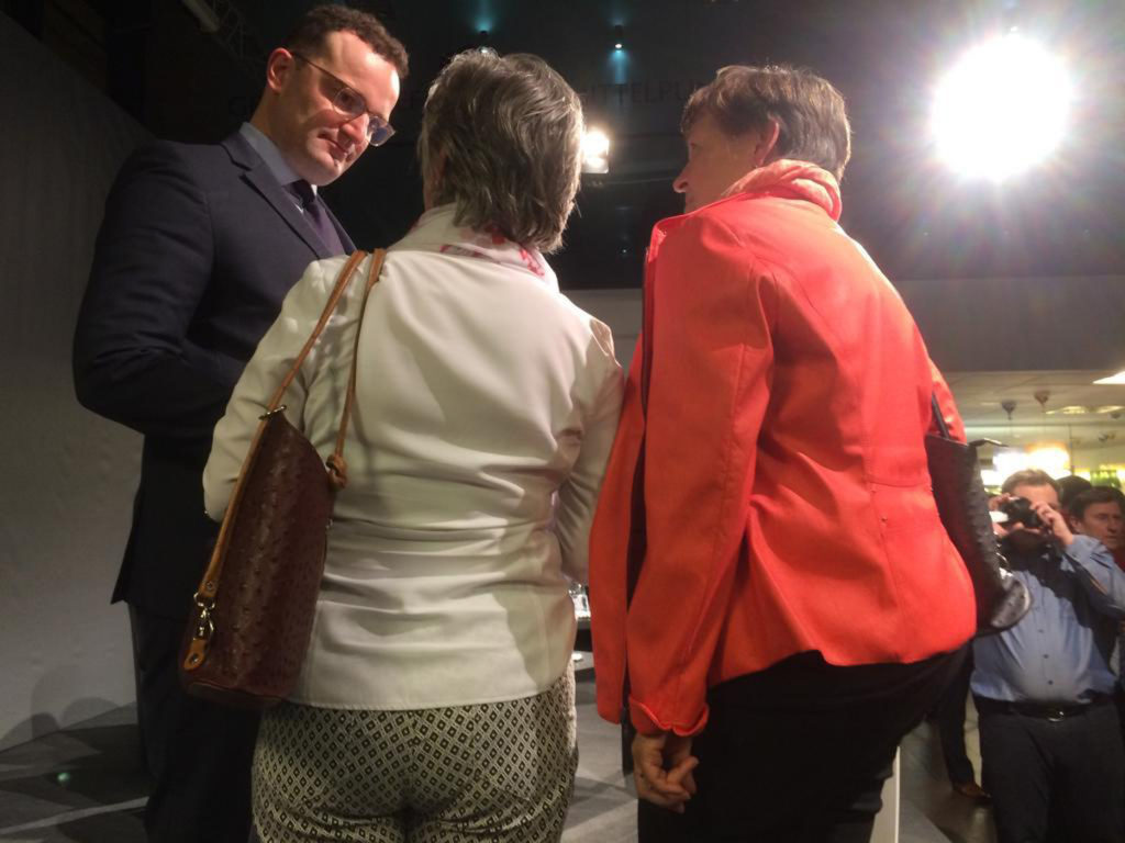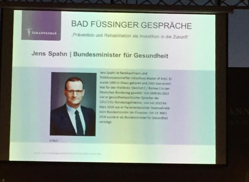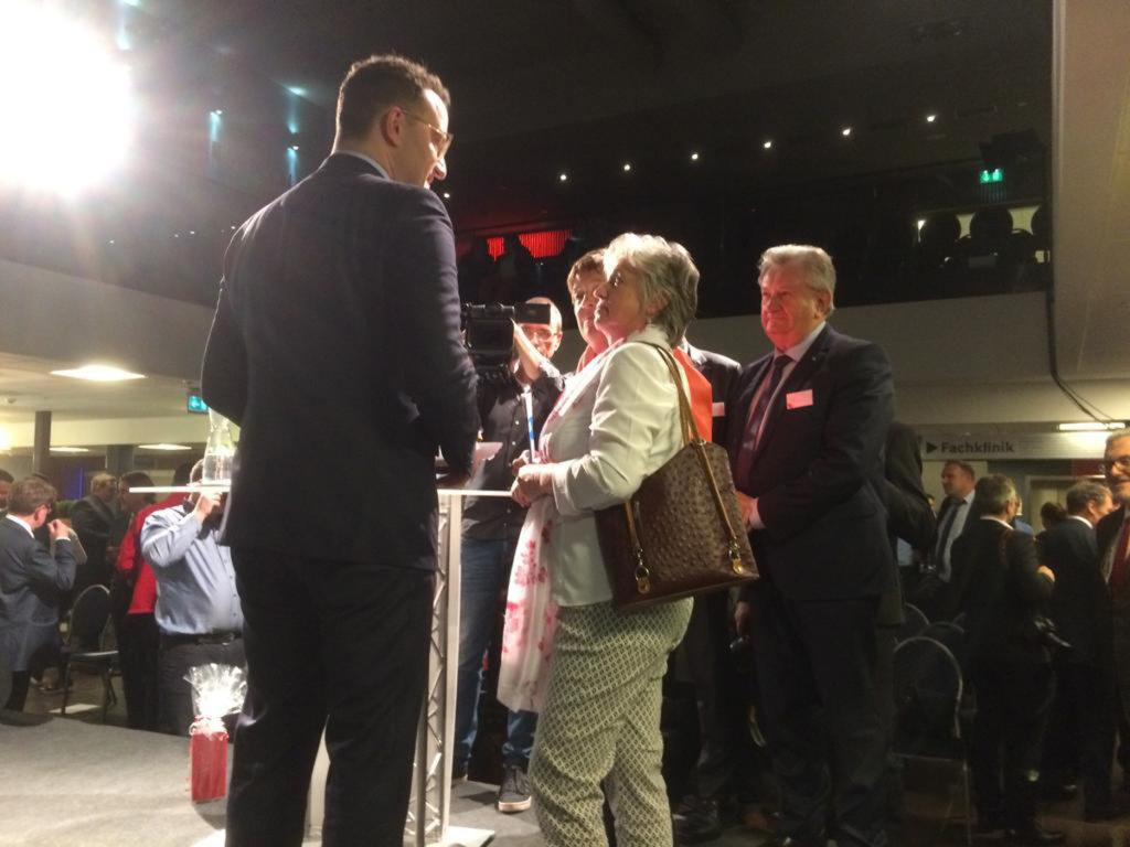 Gruppensprecherin Gabi Maierhofer im Gespräch mit Bundesgesundheitsminister Jens Spahn bei den Bad Füssinger Gesprächen